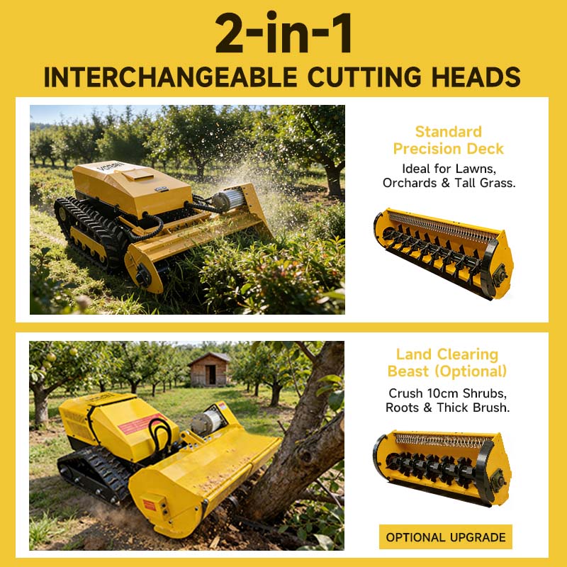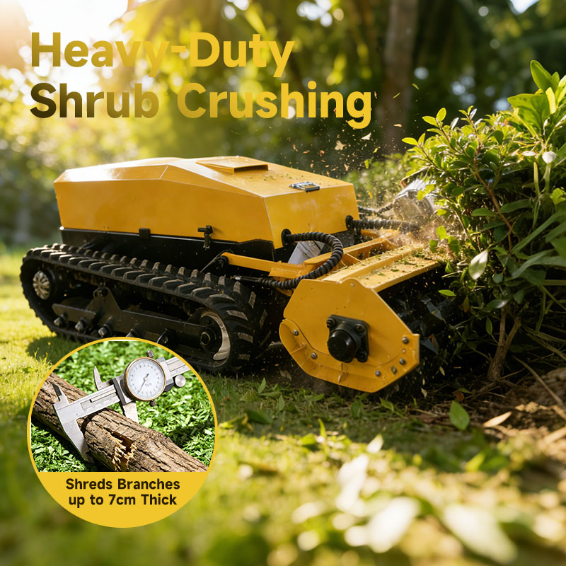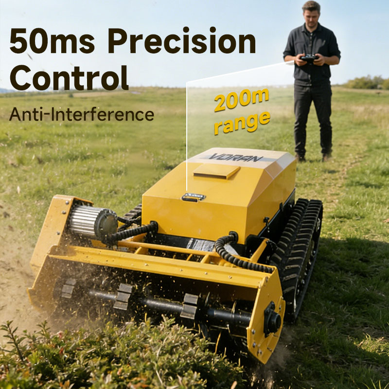 Traditional land management on slopes is both dangerous and inefficient. The VR-LM30E changes the game with its 18cm wide tracks and low center of gravity, allowing it to climb inclines up to 60°. Powered by dual 2000W walking motors, it delivers relentless traction on unstable soil, forest floors, and mountain ridges. The integration of cruise control and infinitely variable speed (0-1.5m/s) ensures that the machine maintains consistent performance even on the most challenging vertical landscapes.