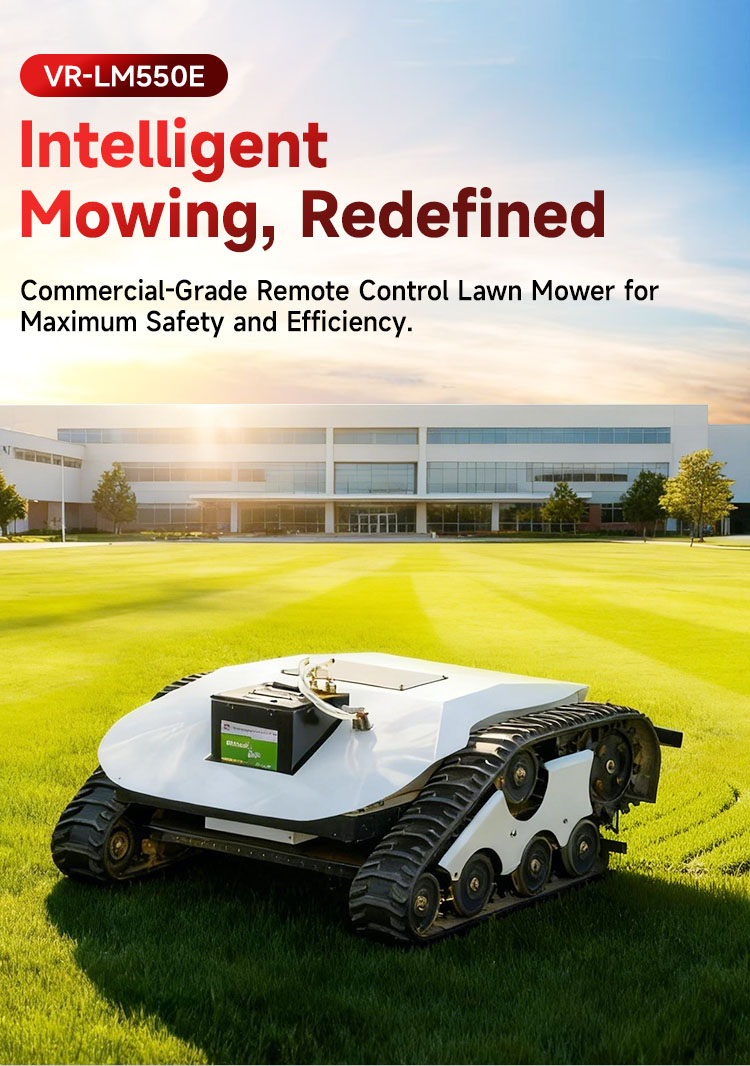 The VR-LM550E is a professional-grade lithium RC mower designed for users who demand zero emissions and low noise without sacrificing power. With its compact 950×880×450mm frame and 96kg weight, it offers exceptional terrain adaptability for orchards, solar farms, and highway embankments.